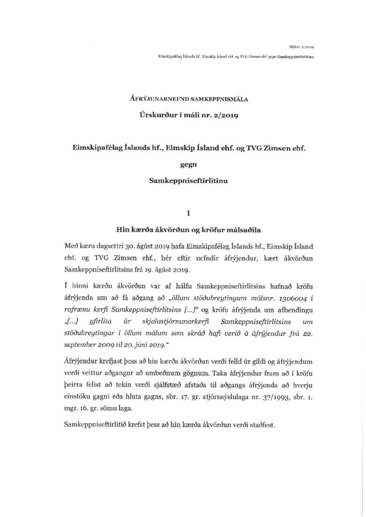 Eimskipafélag Íslands hf., Eimskip Ísland ehf. og TVG Zimsen ehf. gegn Samkeppniseftirlitinu